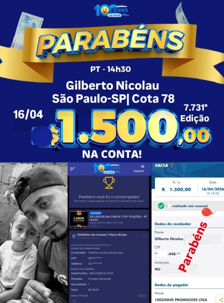 *Sorteio R$ 1.500,00 - 7.731º edição* ATENÇÃO, 10 minutos o prazo de pagamento! Boa sorte!