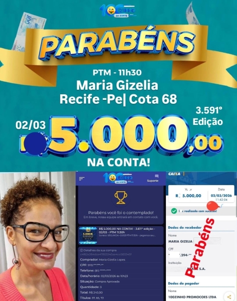 Sorteio: SEGUNDA- 02/03 PTM 11:30h - pagamos seu prêmio na hora!