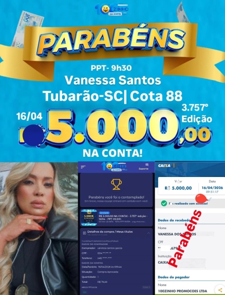 Sorteio: QUINTA - 16/04 PPT 09:30h - pagamos seu prêmio na hora!